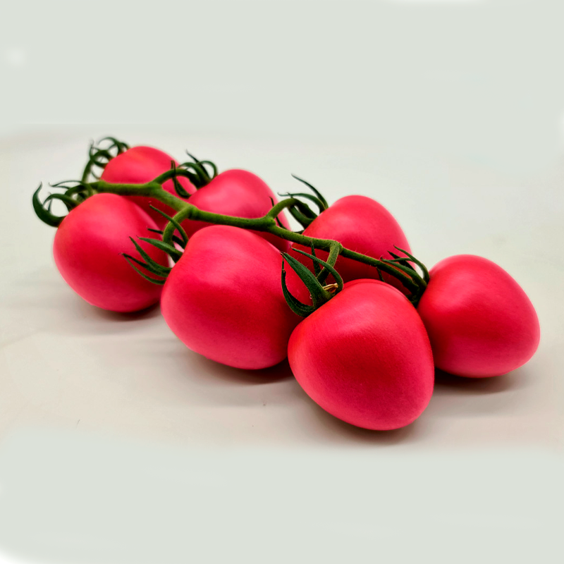 Гібрид KS 375 F1 формує вирівняні овальні плоди насиченого рожевого кольору, які приваблюють своїм товарним виглядом і однорідністю. Середня вага плодів становить 120–150 г, на китицi формується 5–7 якісних томатів.