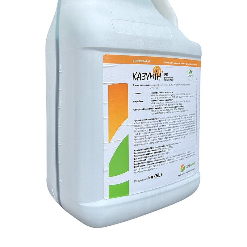Казумін 8Л — це системний засіб захисту рослин, розроблений компанією Самміт Агро Юкрейн. Цей біофунгіцид у формі розчинного концентрату ефективно бореться з хворобами бактеріальної та змішаної природи. Його застосовують на томатах, капусті, яблунях та грушах, щоб знизити ризик розвитку парші та інших бактеріальних уражень.