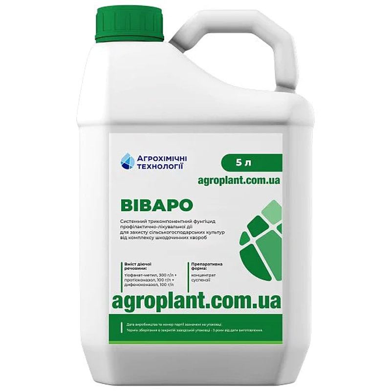 Фунгіцид Віваро від Агрохімічні Технології — це системний препарат, розроблений для комплексного захисту соняшнику. Він ефективно бореться з основними листостебловими захворюваннями, такими як іржа, альтернаріоз, септоріоз та фомоз, допомагаючи зберегти здоров'я посівів протягом усього періоду вегетації.