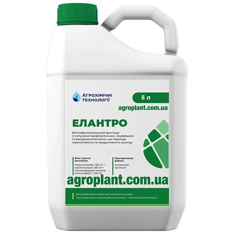 В основі фунгіциду Елантро — піраклостробін і протіоконазол. Таке поєднання забезпечує системну дію та трансламінарне проникнення, що дозволяє препарату ефективно захищати оброблені тканини та запобігати повторному розвитку інфекцій.