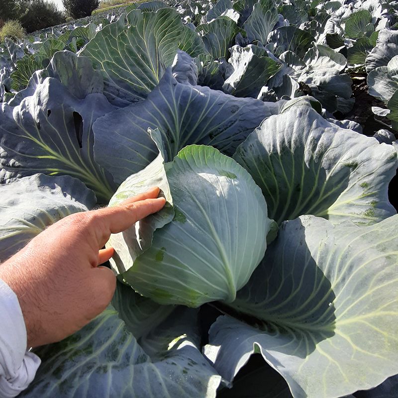 Характеристика плодів – Головка округлої форми, середня маса головки – 2,5-4 кг залежно від схеми посадки. Листя рослини зеленого кольору, вкрите рясним восковим нальотом. Гібрид має високий товарний вигляд та вирівняність. Відрізняється високою щільністю, не схильний до розтріскування.