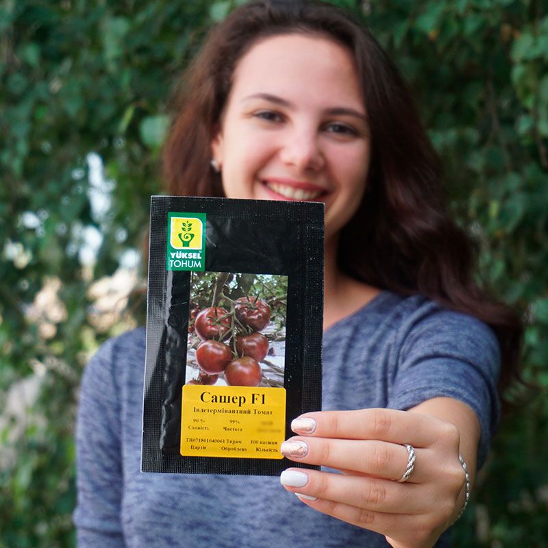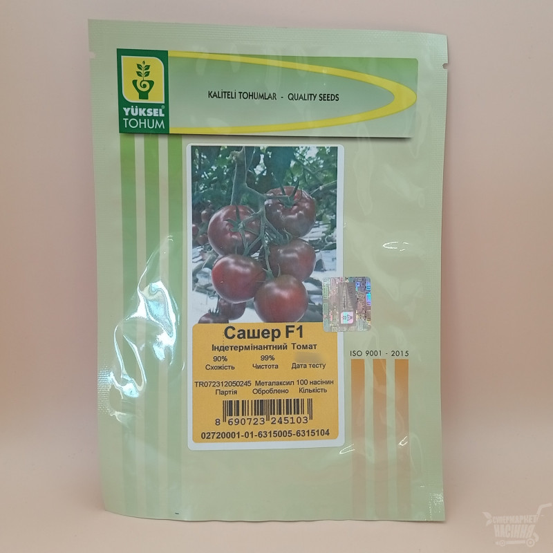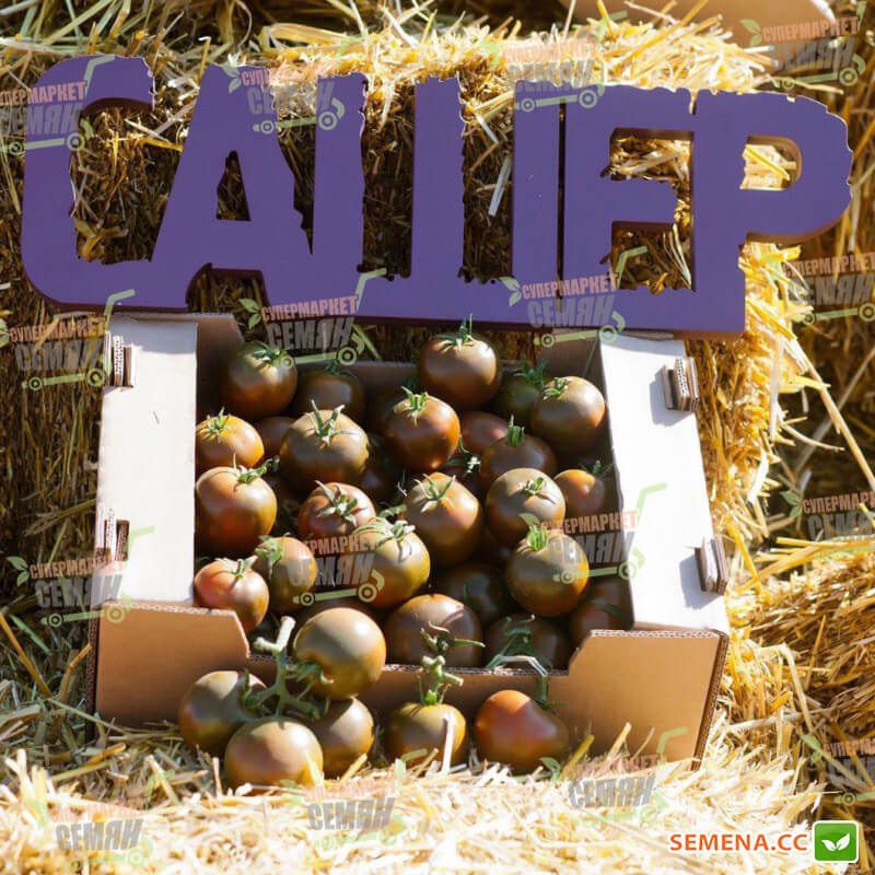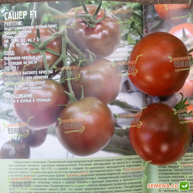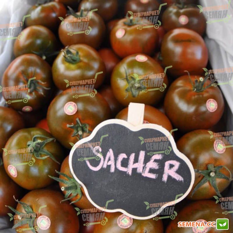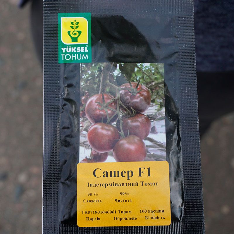 Чорні томати Сашер F1 - індетермінатний гібрид з насиченими червоно-коричневими плодами. Чудовий гібрид для професійного та аматорського вирощування. Томат з високоякісними, твердими плодами. Тривалий час відмінно зберігають зовнішній вигляд. Гібрид з гарним смаком. Плоди вагою - 150-160 гр. Даний томат вирощують у теплиці і у відкритому грунті. Чорний помідор стійко переносить захворювання. Насіння томатів Сашер F1 відрізняються стовідсоткової схожістю.