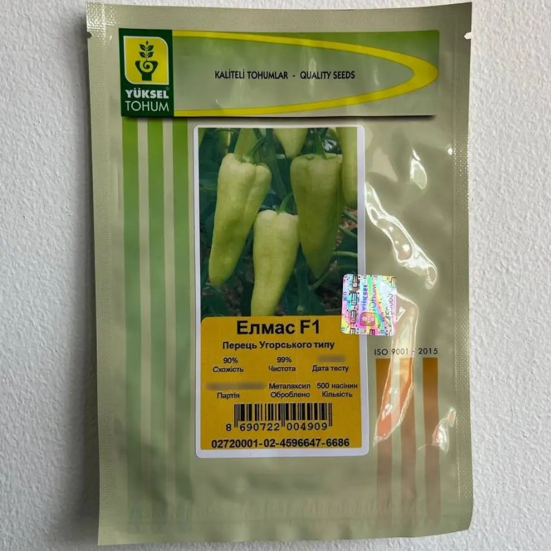 Елмас F1 YUKSEL - потужний гібрид Угорського типу, який утворює короткі міжвузли і сильні бічні пагони. Сорт з солодкими плодами кремового кольору, довжиною 16-18 см. Сорту Елмас F1 притаманні тривале зберігання і висока врожайність. Даний гібрид вирощують в осінній та весняний сезони. По фотографії, що вище, показані плоди цього гібрида.