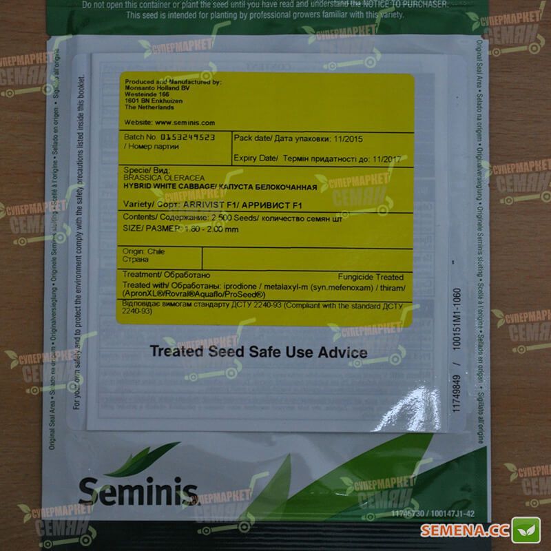 Аррівіст F1 (гібрид) - капуста селекції Семініс із середньостиглим періодом зрілості (110 - 115 днів після висадки розсади).