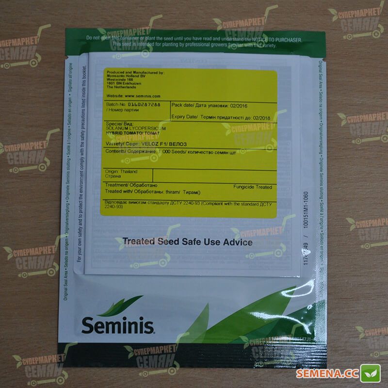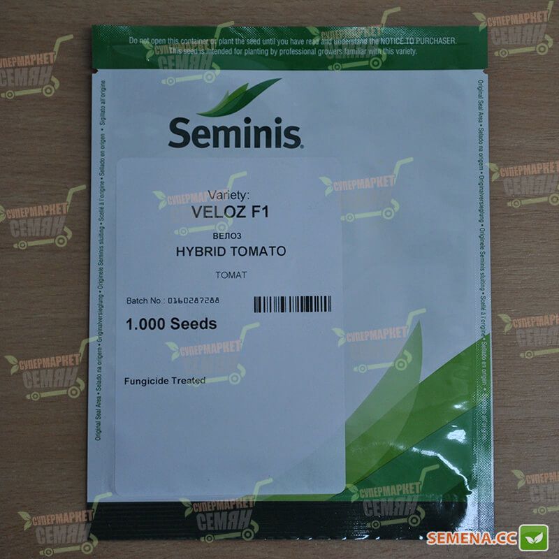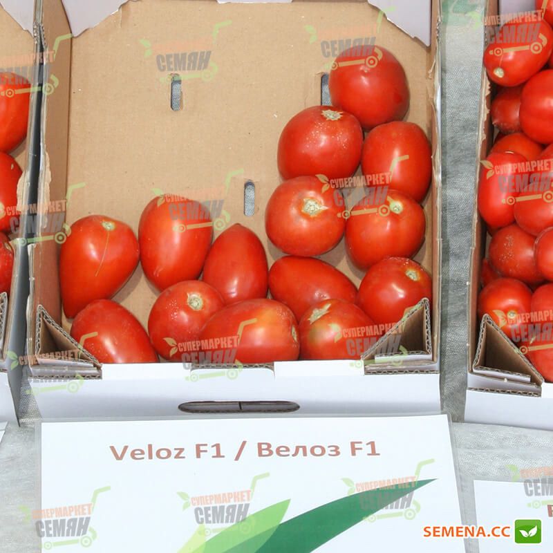 Veloz F1 - гібрид томату від селекції Семініс прийшов на ринок замінити гібрид Яки F1. Дозріває через 90 днів після всходів. Є незрівнянним у всіх категоріях: врожайність (висока), якість плодів (наивища), стійкість (до більшості хвороб), зовнішній вигляд (діамантово червоне забарвлення). Хороший для продажу на свіжому ринку, але також використовують і в переробці на томатпродукти. Вага смачних томатів 110 грам. Замовляючи даний томат, ви не помилитеся у своєму виборі.