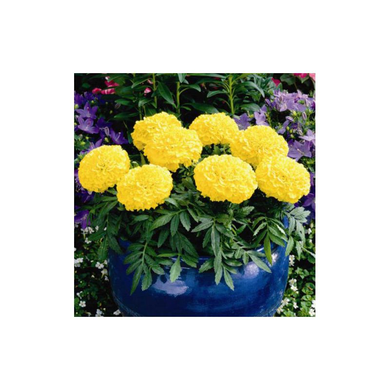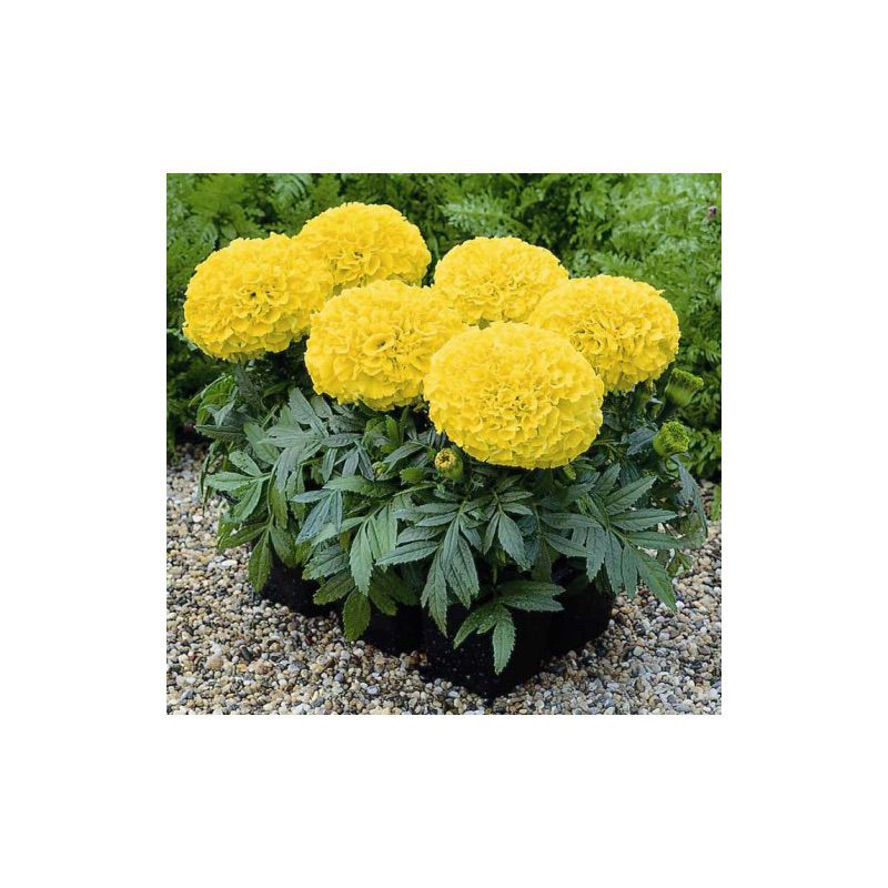 Чорнобривці Еквінокс лимонні - компактні кущі висотою 25-30 см, справжня прикраса будь-яких клумб.