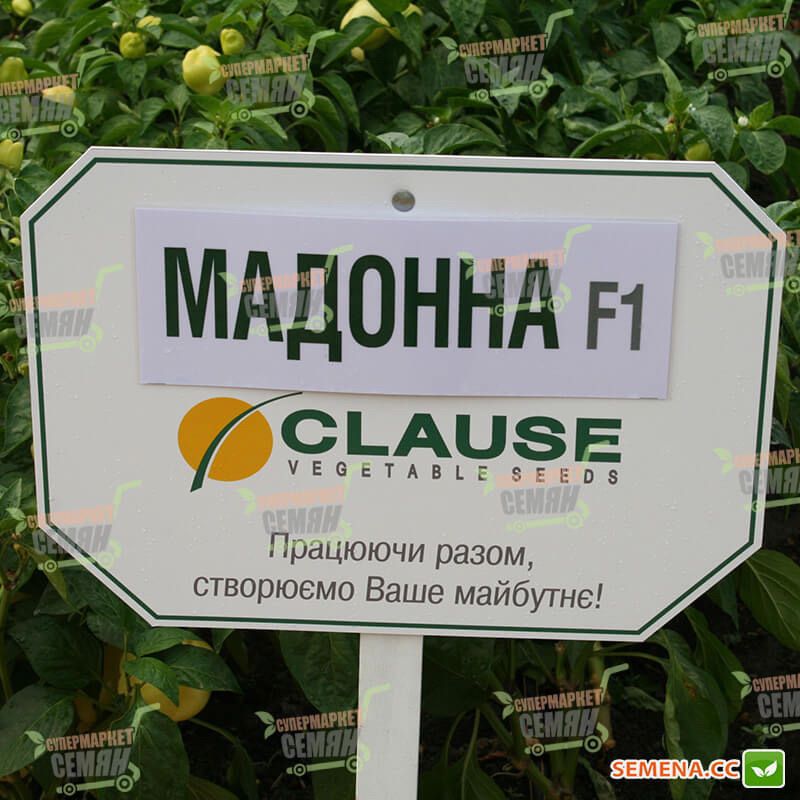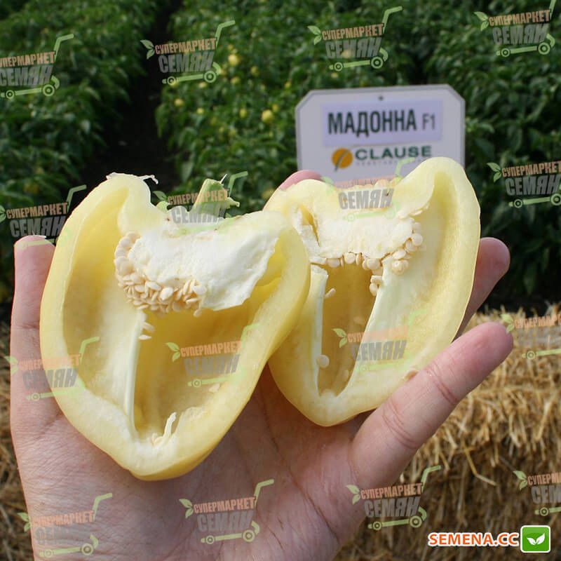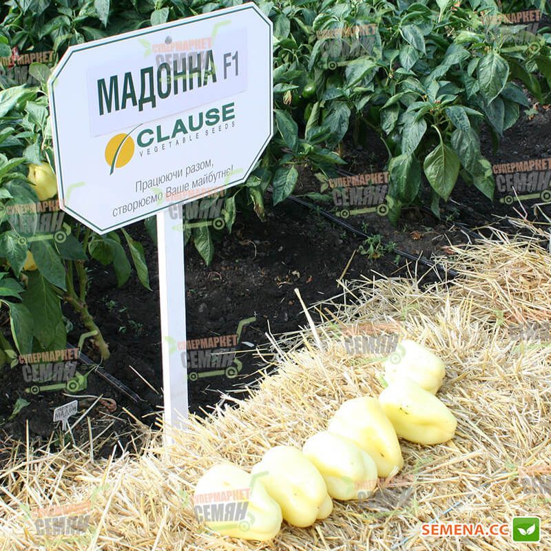 Мадонна F1 - це ранній гібрид солодкого перцю від компанії Teizer. Період вегетації триває - 2 місяці (60 - 65 днів). Рослина високоросла, потужна, має короткі міжвузля. Плоди, як ви можете бачити по фотографії наданої вище, вирівняні, світло-жовтого кольору в технічній стиглості. Цей гібрид перцю використовують для отримання продукції в ранні терміни.