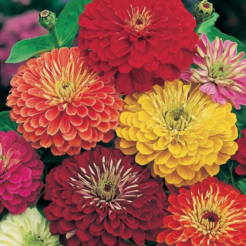 Цинія (майори) елегантна Бордюр суміш (Zinnia elegans pumila Bordeaux mix) – однорічна, прямостояча, добре розгалужена рослина, висотою 50-60 см.
