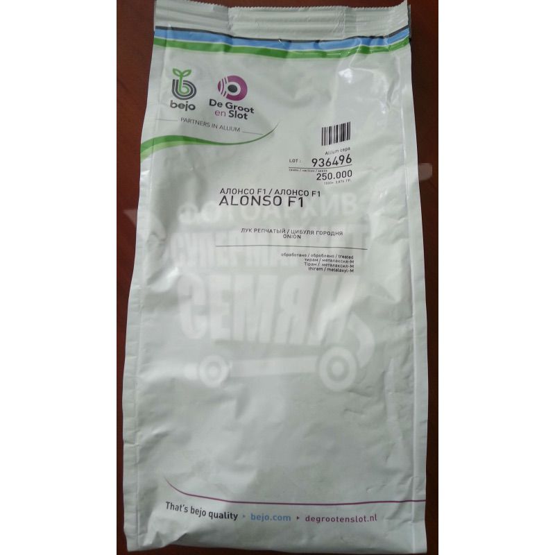 Алонсо F1 - гібрид цибулі ріпчастої. Рослина високоврожайна, середньостигла (115-118 днів). Плід щільний, покритий жовто-бронзовою лускою, володіє білою м'якоттю, округлої форми.