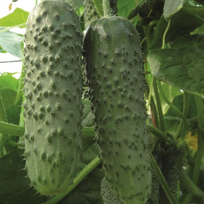 Характеристика плодів – Зеленці дрібнобугорчаті, довжиною 12-15 см, масою 90-110 г, зеленого кольору зі слабкими світлими смужками у носика.