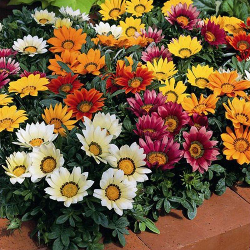 Газанія блискуча Сонячне світло суміш (Gazania spiendens Sunshine mix) – однорічна рослина, висотою 25-30 см, з темно-зеленим листям.