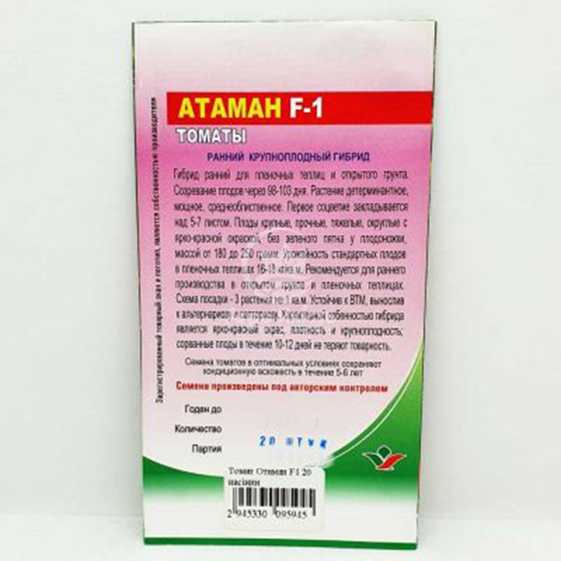 Томат Отаман - це ранньостиглий детермінантний гібрид, який є великоплідним.