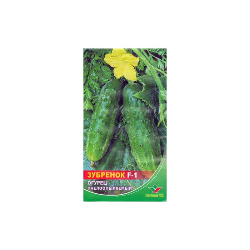 Зубрьонок F1 - це бджолозапильний середньостиглий гібрид огірка. Від сходів до періоду плодоношення повинно пройти близько 50 днів. Довжина головного стебла сягає висоти до 3,5 метра. Сам плід в довжину близько 12 сантиметрів і має циліндричну, середньобугорчату форму. Цей гібрид призначений для вирощування як і у відкритому ґрунті, так і в теплицях. Маса одного плоду близько 100 грамів. Зубрьонок F1 призначений для консервації та засолювання.