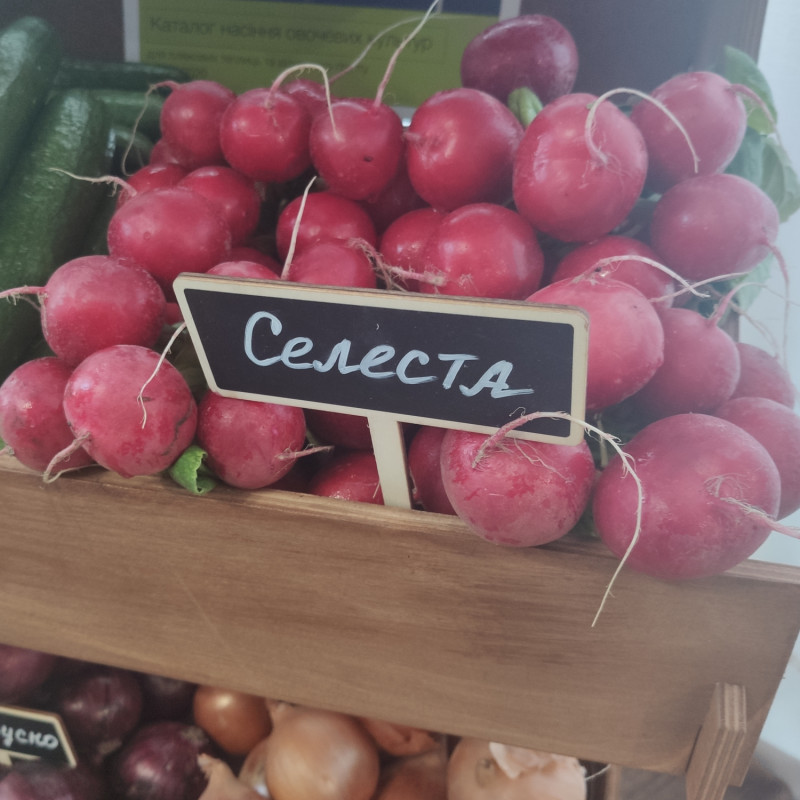 Селеста F1 насіння редиски (калібр 2,75-3 мм) (Enza Zaden). Ранньостиглий гібрид редису з високим урожаєм високої якості. Термін достигання 20-25 днів. Посів Селести Ф1 можна проводити починаючи з лютого і закінчуючи кінцем жовтня. Місце зростання: відкритий грунт і укриття з плівки. Бадилля компактне, коренеплоди великі, округлі, червоні з тоненьким корінцем. Тривалий час зберігають свій товарний вигляд в полі і чудово перевозяться.