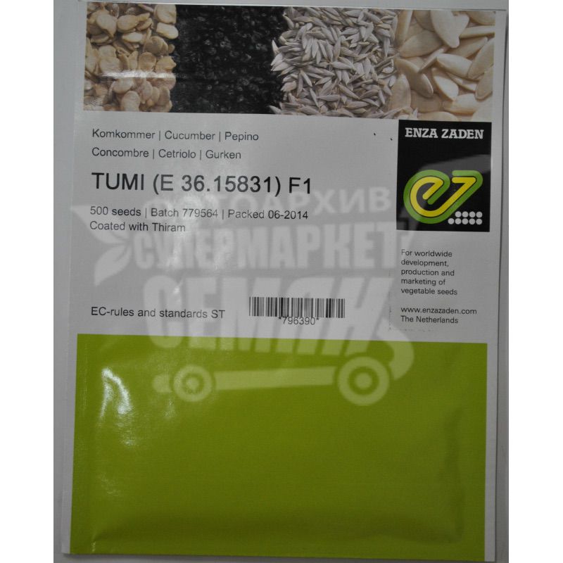 Від сходів до початку плодоношення 38-40 днів. Огірок для культивування у весняному, літньому і осінньому оборотах в парниках. Також завдяки високій стійкості Тумі F1 до хвороб (Ccu, Px, CMV та CVYV) може вирощуватися в полі. Плоди красивого темно-зеленого забарвлення, без білих смуг на кінці. За формою вони ближче до корнішонів, подовжено-циліндричні, пропорції довжини до діаметру - 3,2-3,3 до 1. Гібрид відрізняється потужними коренями, не скидає зав'язь при стресах, наприклад скачки температури. У рослини рівномірна і тривала віддача врожаю. Дає по 1-2 зеленця з однієї пазухи. Рекомендується формувати даний гібрид в один пагін і своєчасно прибирати всі пасинки.