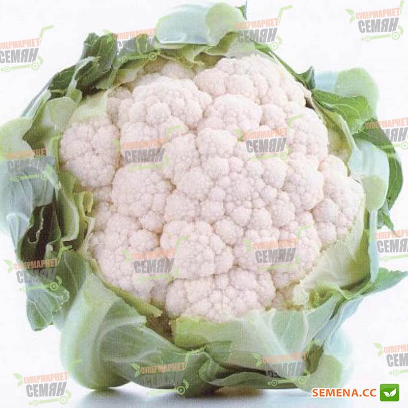 Суцвіття має куполоподібну, щільну, велику форму білого кольору. Вага може досягати 0,7-1,5 кг (до 2 кг). Рослина висока з вертикальним листям.
