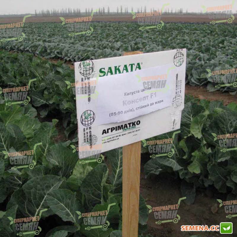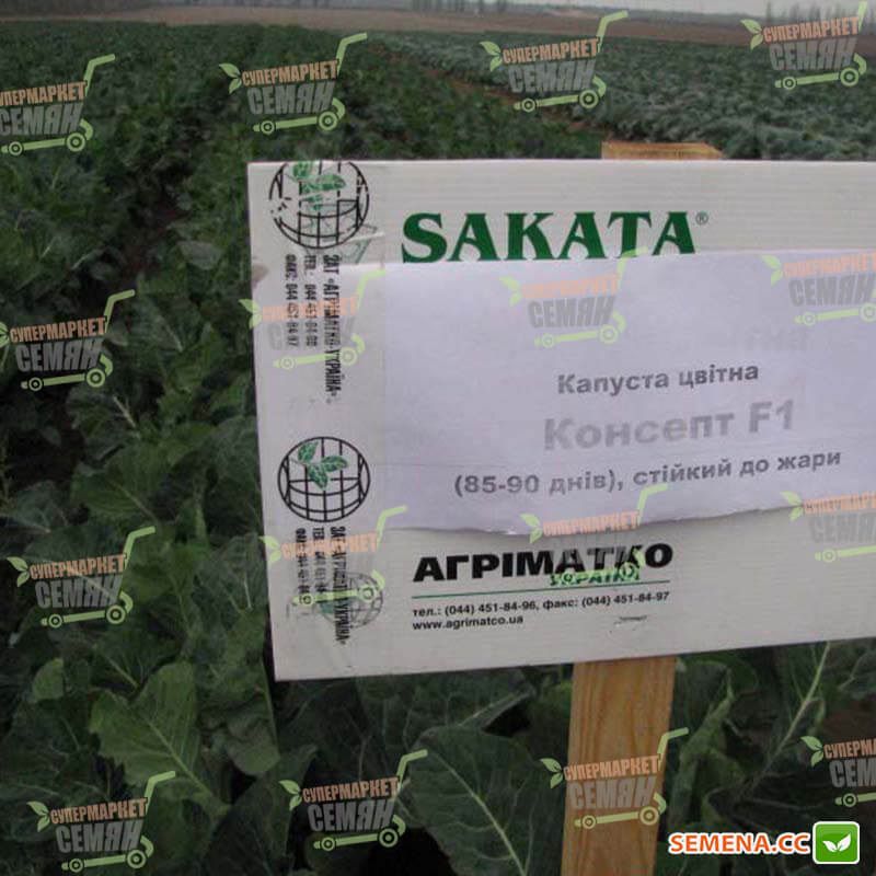 Характеристика плодів – Головка масою 1-2,5 кг, білосніжно-біла, куполоподібна, добре захищена щільним покривним листям (декілька шарів). Висока щільність суцвіть.