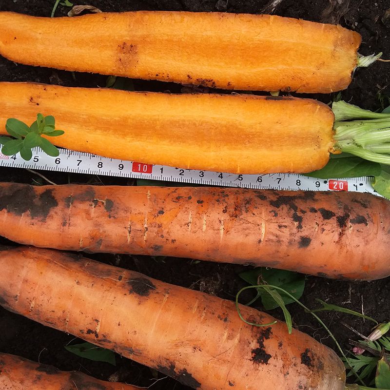 Характеристика плоду – Плоди товсті, однорідні, довжиною 20 см, середня вага – 250 г, насиченого помаранчевого кольору, з притаманними високими смаковими якостями (солодкі), з маленькою серцевиною.