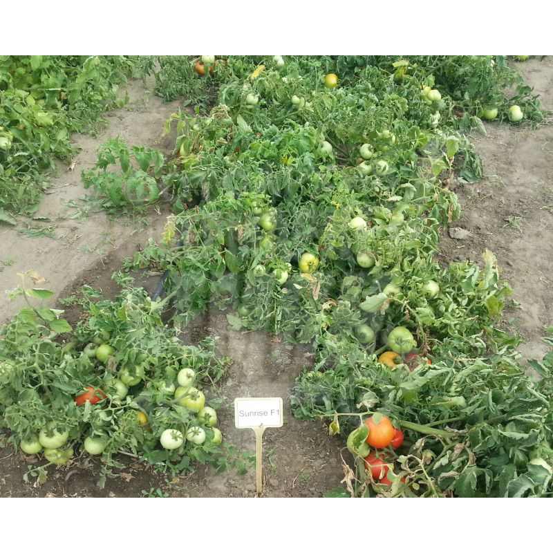 Sunrise - гібрид, який відзначився на ринку стабільністю і надійністю. Детермінантний томат червоного кольору дає смачні і соковиті плоди (250 грам). Період вегетації 62 - 64 дні після пересадки. Для більш стабільного і рясного врожаю використовують обробку фунгіцидом. Коренева система і розвинений кущ сприяють вирощуванню в складних умовах. Своєю невибагливістю і врожайністю завоював довіру багатьох фермерів, особливо на території України. Замовляючи ці насіння, ви отримаєте томат, пристосований до наступних захворювань: вертіциллезному і фузаріозного в'янення, альтернаріозному раку стебла, сірої плямистості листя.