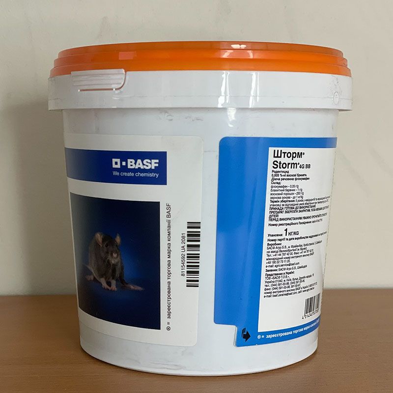Шторм - це родентицид, який використовується проти великого діапазону гризунів. За інтенсивністю впливу він більш ніж у 6 разів перевершує кращі зразки сучасних родентицидів багаторазового поїдання. Препарат має високу економічність - до 4-х брикетів достатньо для повного знищення гризунів у приміщенні площею 50 кв. м. Має досить тривалий період захисної дії - до 2-х років. Загибель шкідливих гризунів настає на 7-10 день після поїдання, не передаючи сигналу тривоги. Препарат не пліснявіє, не розмокає і не вбирає сторонні запахи.