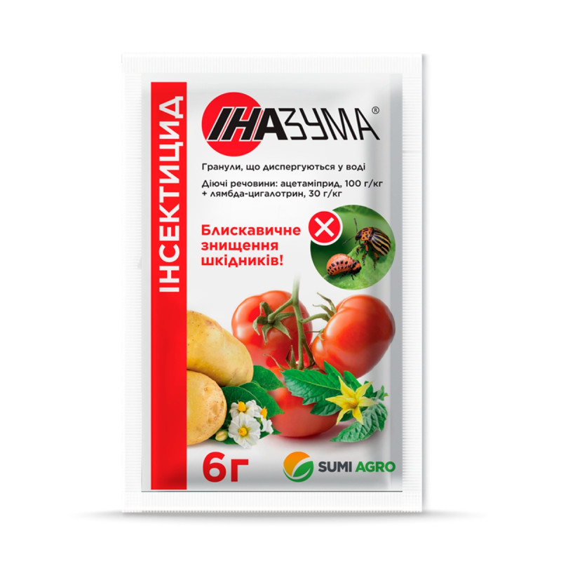 Інсектицид Іназума має в своєму складі дві діючі речовини, що впливають на нервову систему комах, але відносяться до різних хімічних класів і мають різний механізм дії на шкідників.
