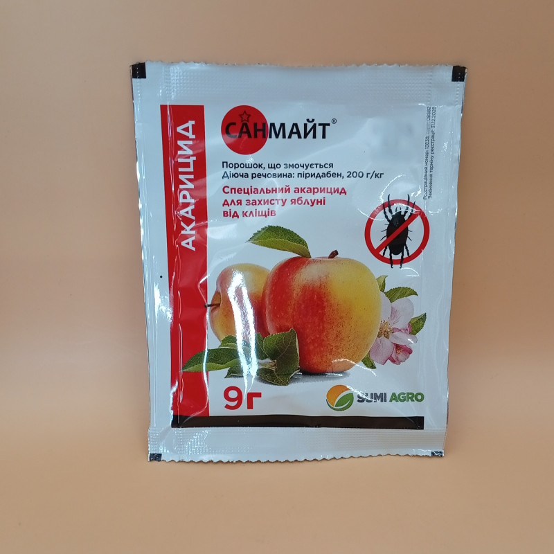 - Найкраще використовувати Санмайт після цвітіння, коли щільність популяції кліщів досягає або перевищує пороговий рівень.
