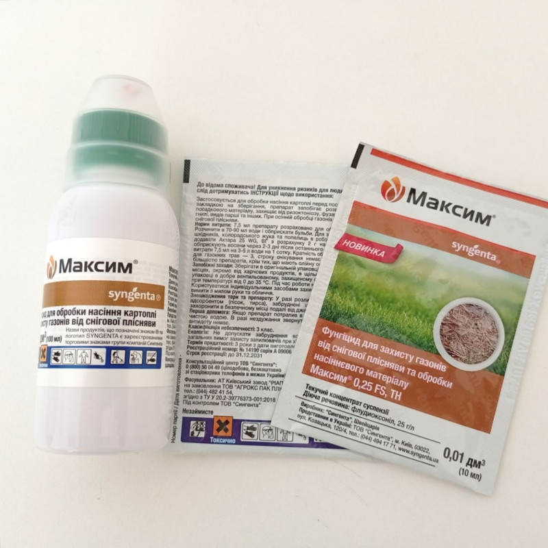Протруйник Максим 025 FS – ефективний фунгіцидний препарат, який бореться з хворобами зернових, гороху, сорго, ріпаку, кукурудзи, картоплі, соняшнику, цукрових буряків.