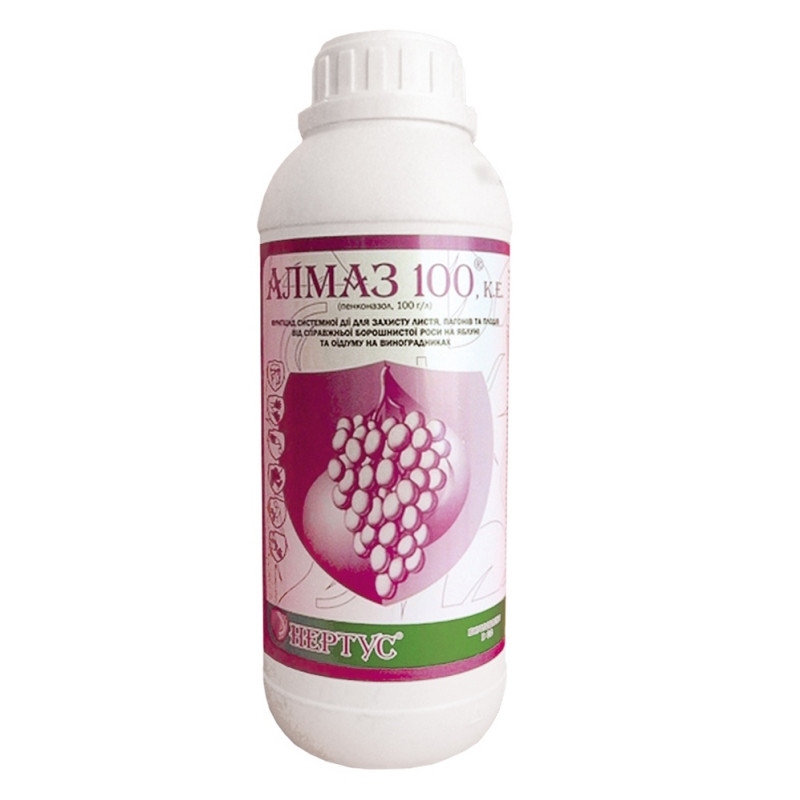 - Препарат Алмаз має лікувальні властивості, що дозволяє усунути негативний вплив патогена на культурні рослини, навіть якщо зараження вже відбулося.