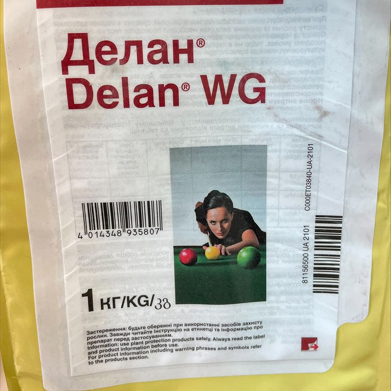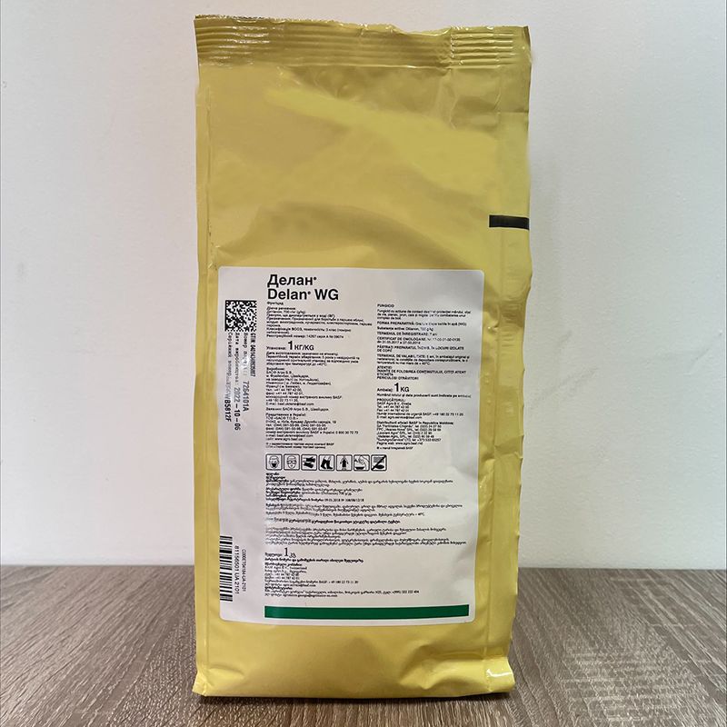 Делан - контактний фунгіцид, що володіє профілактичною дію. Після проведення обробки рослина покривається дощостійким захисним шаром, ефективно пригнічує проростання спор грибів, при цьому, деяка частина діючої речовини становить резервні депо фунгіциду на поверхні листа, забезпечуючи стабільну і непорушну фунгіцидну дію.