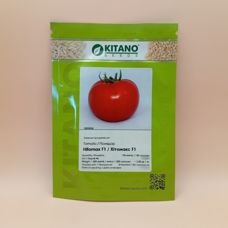 Хітомакс F1 насіння томата індетермінантного (Kitano Seeds). Індетермінантний ранній помідор для вживання в свіжому вигляді. Термін дозрівання 100 - 105 днів. Рослина з хорошою силою зростання, сильними коренями, розвиненою вегетативною масою, яка захищае урожай від опіків. Хітомакс F1 закладае по 5-6 плодів на кисті. Томати округлі, тверді, червоного кольору, дуже смачні і апетитні, вагою 180 гр. Підходить для культивування в теплицях з плівки в весняно літньому обороті. Додаткова інформація про гібрид: хороше завязування при стресі; стійкість до розтріскування; транспортабельність; дружне дозрівання до останньої вибірки; толерантність до вертицильозу, фузаріозу раси 3, вірусам томатної мозаїки, плямистого в'янення і жовтої кучерявості листя.