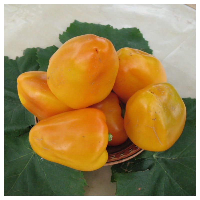 Характеристика плодів – Плоди конусоподібні, у біологічній стиглості жовто-помаранчевого кольору, вагою 200-250 г, товстостінні.