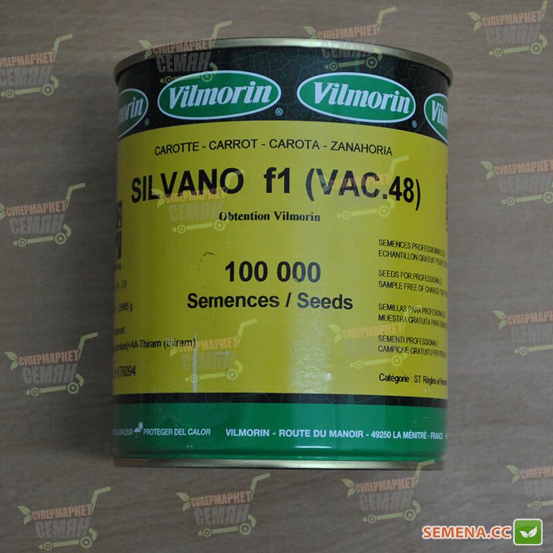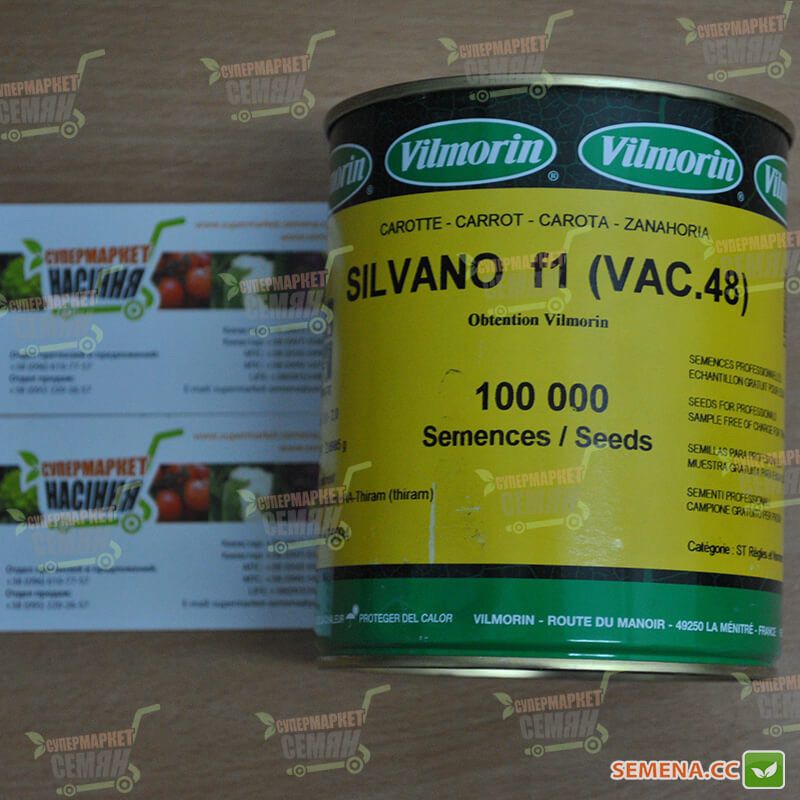 Морква Сілвано F1 - це ранній гібрид моркви типу Нантес. Від перших всходів до збирання врожаю 105 - 110 днів. Плоди конічної форми, вирівняні, помаранчевого кольору. Листовий апарат прямостоячий, темно-зеленого кольору. Даний гібрид використовується для споживання у свіжому вигляді, консервації та тривалого зберігання. Володіє сильною силою зростання, що дозволяє здійснювати пізнє прибирання. Всі ці фактори сприятливо впливають на якість товарної продукції.