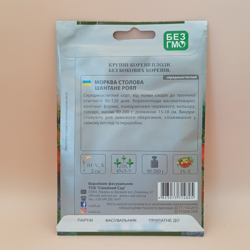 Сегментація – середньостиглий сорт моркви сортотипу Шантане. Вегетаційний період – 90-120 днів. Збирання врожаю можна починати через 100-110 днів від появи сходів.