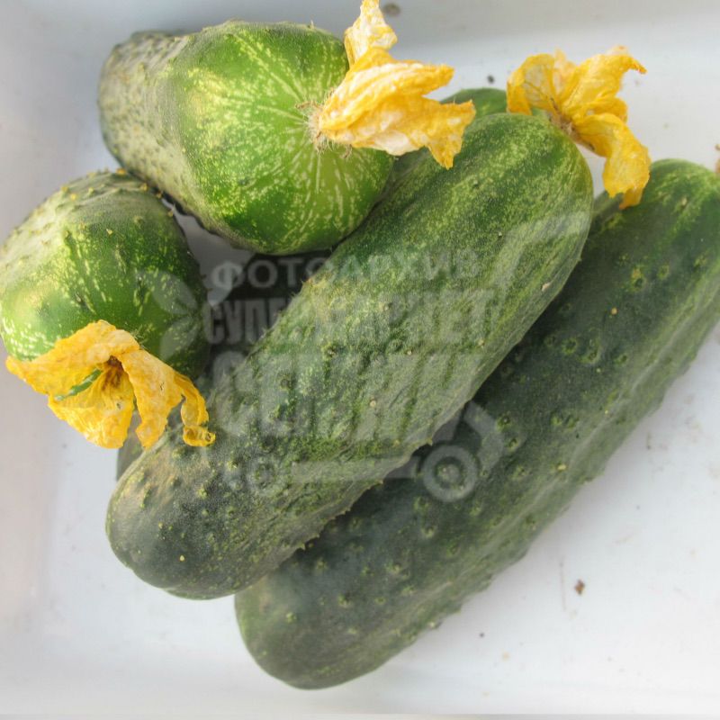 Характеристика плодів – Огірки досить однорідні, довжиною – 6-12 см, темно-зеленого забарвлення, білошипі, з чудовими засолювальними якостями, без гіркоти, з тонкою шкіркою.