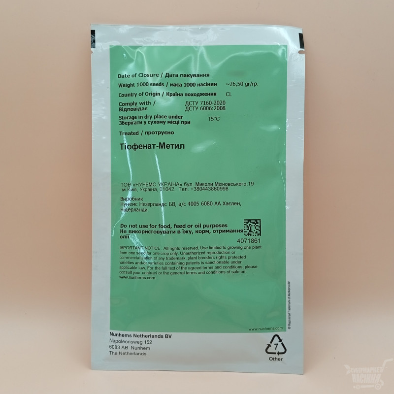 Важливо! Компанія-виробник БЕЗ ПОПЕРЕДЖЕННЯ може змінити дизайн упаковки, розфарбування та обробки насіння.
