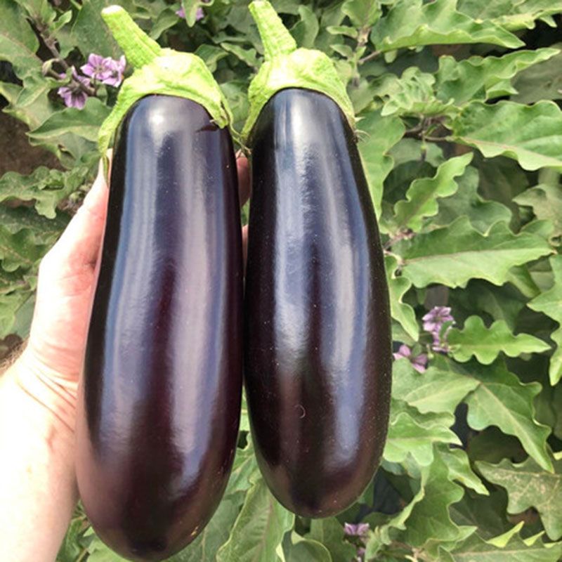 Характеристика плодів – Плоди видовжено-циліндрічної форми, довжина досягає до 25 см, діаметром до 7 см, масою до 350 г. Баклажан має насичений, блискучий темно-фіолетовий колір. Шипи на плодоніжках плодів відсутні.