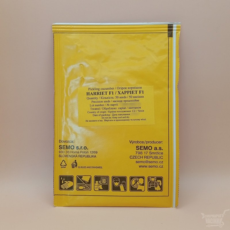 Огірок Харрієт F1 - є ранньостиглим, партенокарпічним гібридом. Допускається інтенсивне вирощування із застосуванням крапельного зрошення. Плоди характеризуються темно-зеленого кольору, вирівняні, не мають внутрішньої порожнечі, хороші смакові якості. Мають прекрасне співвідношення довжини та діаметру 3:1. Даний гібрид призначений для засолювання, консервування та свіжого ринку. Стійкий до вірусу огіркової мозаїки. Всі ці фактори сприятливо впливають на якість товарної продукції.