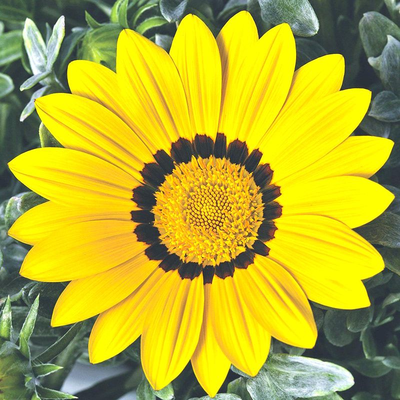 Газанія Фрості Кісс F1 жовта (Gazania rigens Frosty Kiss F1 yellow) – ранньоквітуча і найбільш однорідна серія серед існуючих на ринку газаній зі срібним забарвленням листя.