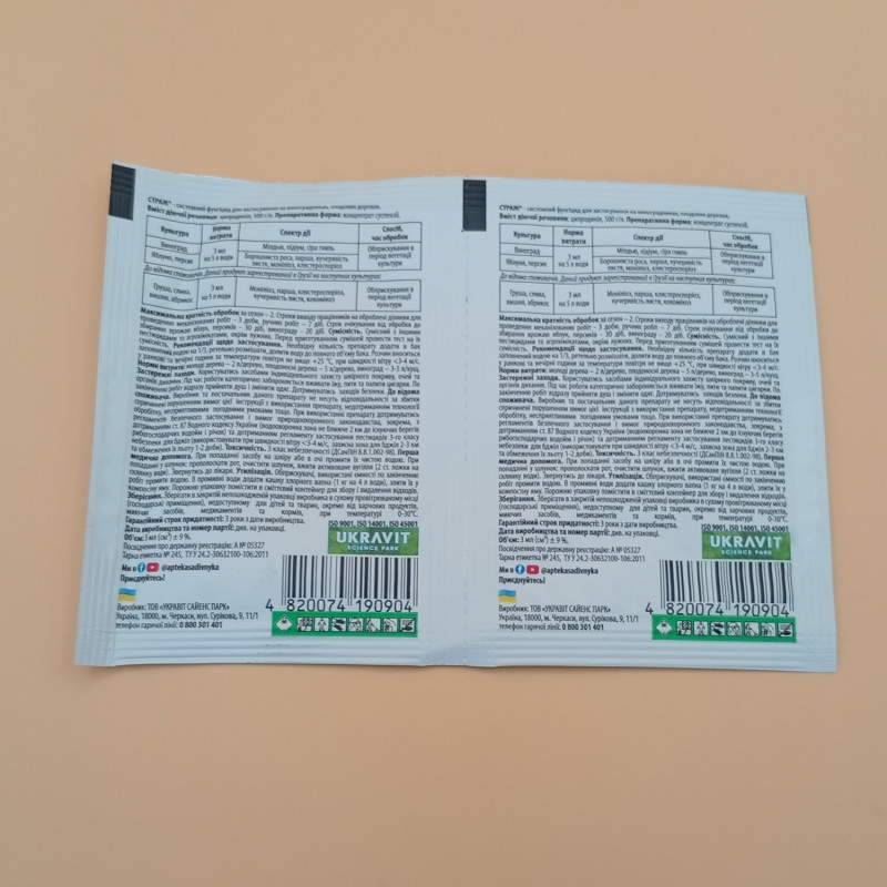 Яблуня | 0,3-0,4 | У період вегетації | 2 | 800-1000 | 30 днів | Моніліоз, клястероспоріоз, курчавость листя, парша, борошниста роса |