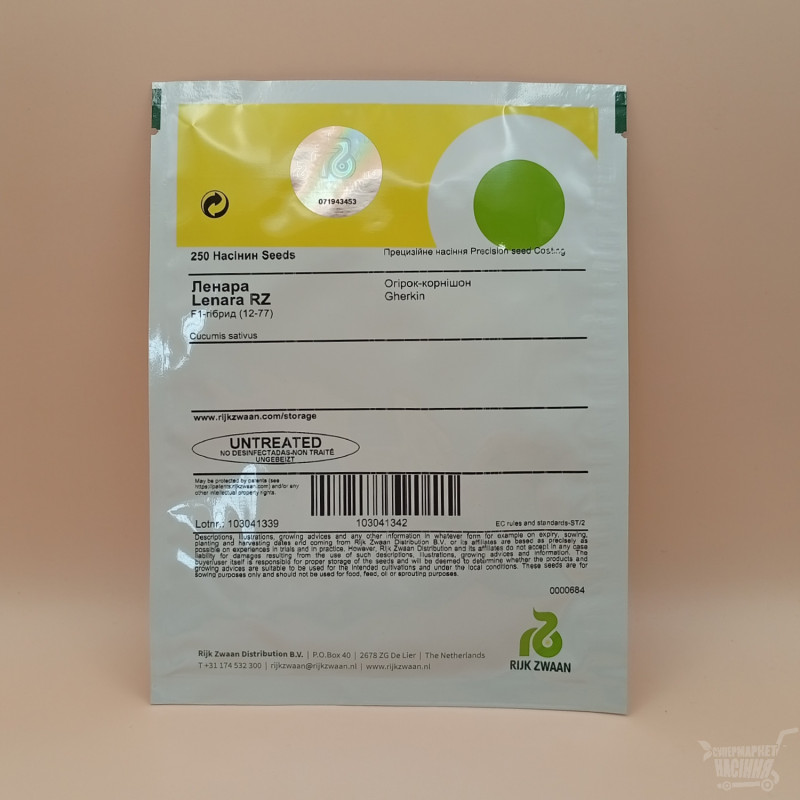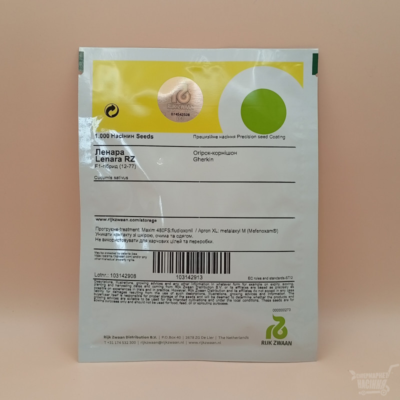 Ленара F1 - насіння раннього огірка-корнішона самозапильного - новинка від Rijk Zwaan. Період вегетації 40 днів. Цей гібрид огірка вирощують у закритому ґрунті в різних теплицях. Відмінні результати показує при вирощуванні у відкритому ґрунті і при вирощуванні в першому і другому обороті. Дуже урожайний гібрид. Рослина досить відкрита, бічних пагонів формує мало, швидко відновлюється після стресу. Плоди формуються горбкуваті, темно-зеленого забарвлення. Ленара F1 формує плоди високої якості, мають хорошу внутрішню структуру, гіркота в плодах відсутня, не формує "діжку".