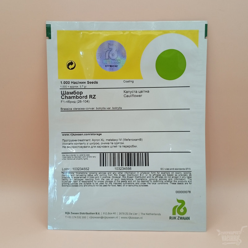 Насіння капусти Шамфорд F1 (Rijk Zwaan) може бути в двох видах упаковки: