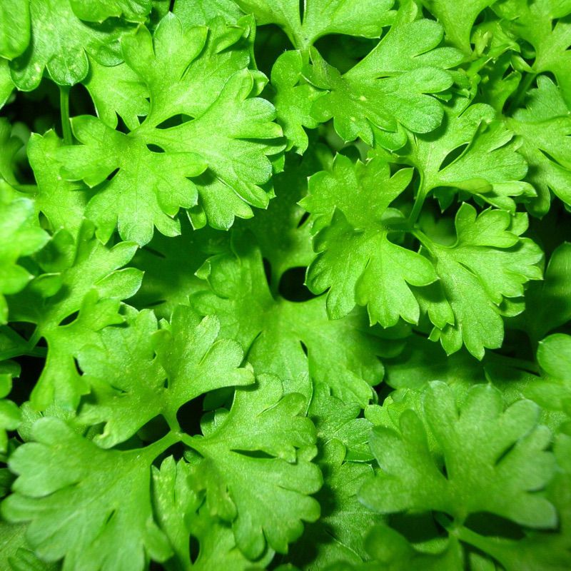 Розетка листя у висоту досягає 20 - 40 см, потужна, формує до 25 листків. Висівають петрушку від другої половини квітня до листопада. Листя темно-зеленого кольору, ароматні, мають великі частки, прекрасно відростають після зрізання.