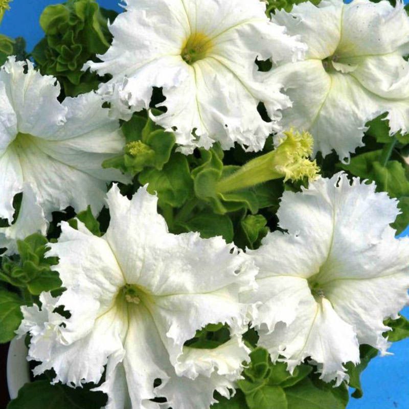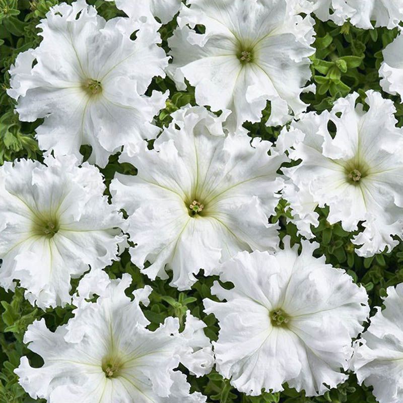 Петунія Афродіта F1 біла (white) – нова крупноквіткова петунія з хвилястими, торочкуватими квітами.