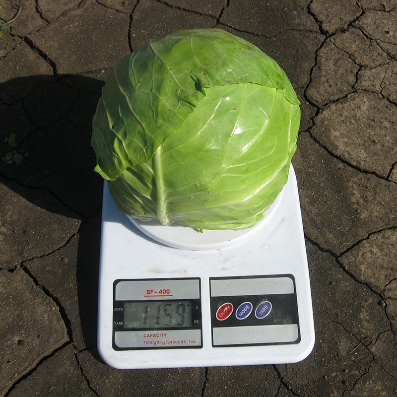 Характеристика плодів – Головка щільна, округлої форми, вагою 1-2,2 кг залежно від густоти посадки. Забарвлення зелене, глянсове.