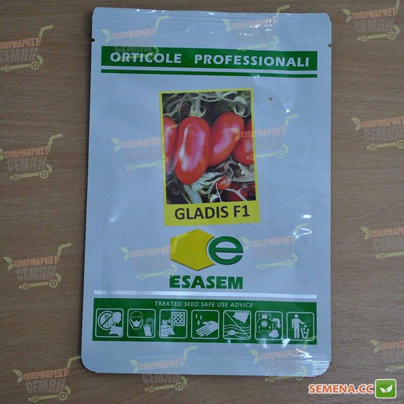 Гледіс F1 - томат середньої стиглості, дає високий урожай (з одного куща збирають до 100 плодів). Термін дозрівання 115-120 днів. Даний гібрид має середню вагу 70 грам і товщину стінки 8 мм. Крапельний полив допомагає досягти високого врожаю. Як і всі подібні томати здатний до тривалого транспортування. Добре росте на всіх видах грунтів.