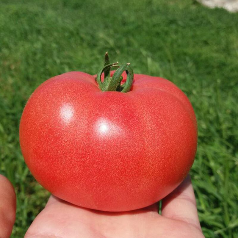 Характеристика плода – Плоди яскраво-рожевого кольору, щільні, багатокамерні, лежкі. Середня маса – 300 г. Форма – округла. Стійкі до розтріскування. Дуже дружні в дозріванні.