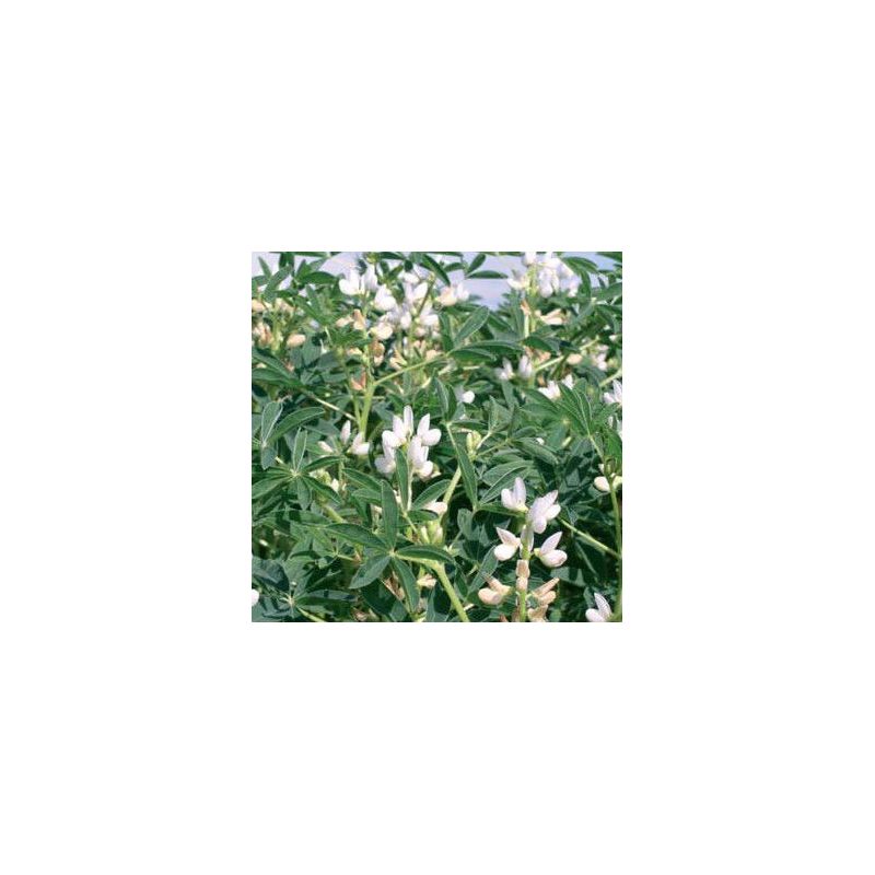 Люпин кормовий білий - це трав'яниста рослина, яке має пальчасте листя.