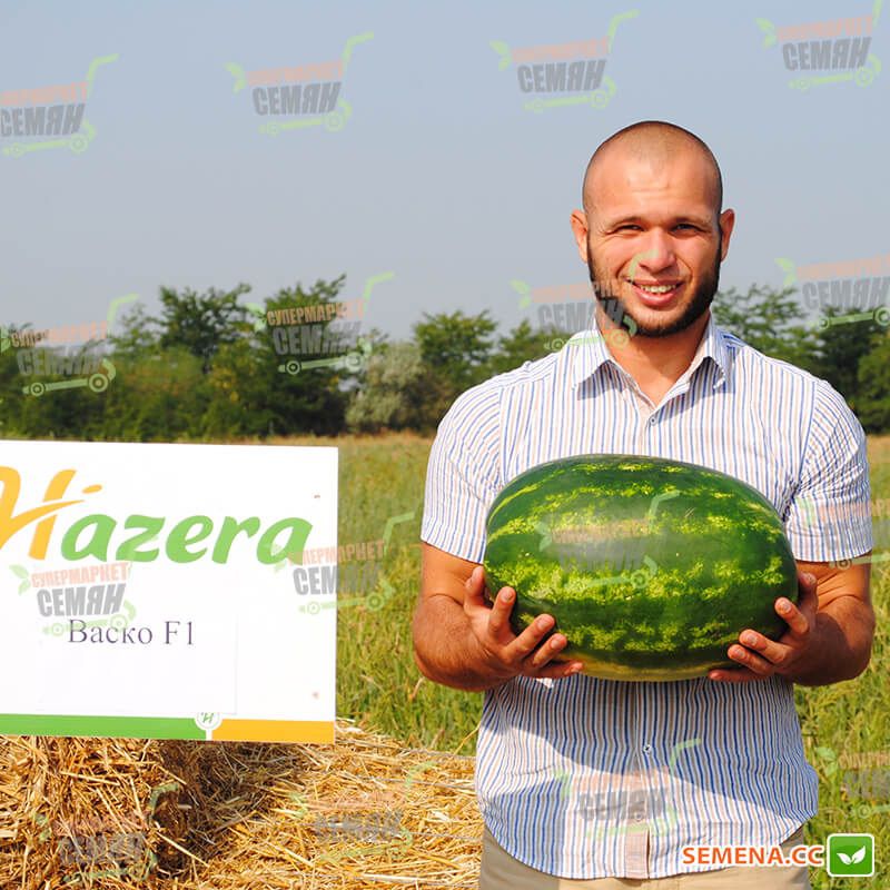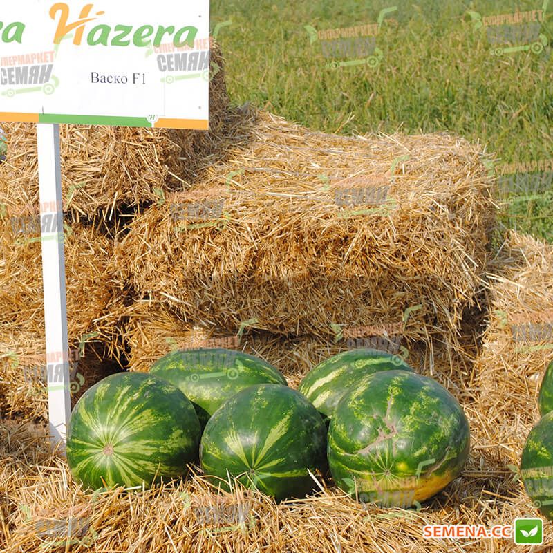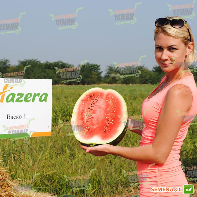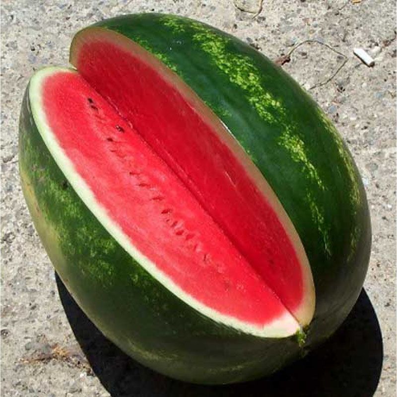 Характеристика плодів – Плоди округло-овальної форми, добре транспортуються. Шкірка привабливого зеленого кольору з темно-зеленими смугами. М’якоть має насичено-червоний відтінок, хрустка та соковита. Середня маса плоду – 8-12 кг, нерідко плоди досягають 15-18 кг і більше. Вміст цукрів – 10-11%.