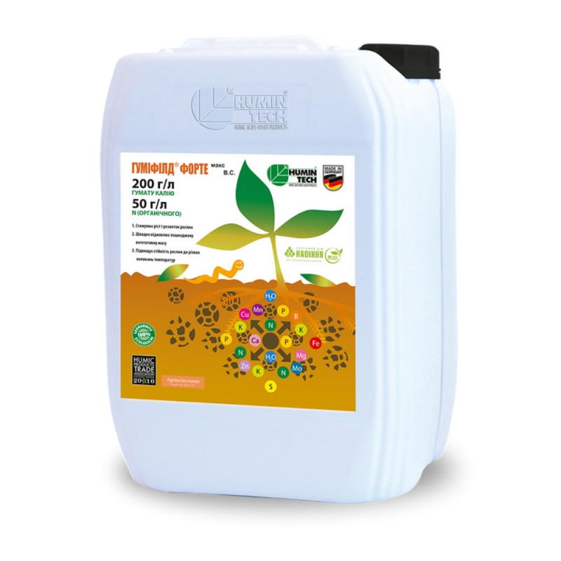 Гуміфілд Форте Макс антистресант добриво Humintech — потужний антистресант на основі гумату калію в рідкій формі з доданим органічним азотом. Миттєва дія та виражений «грін-ефект».