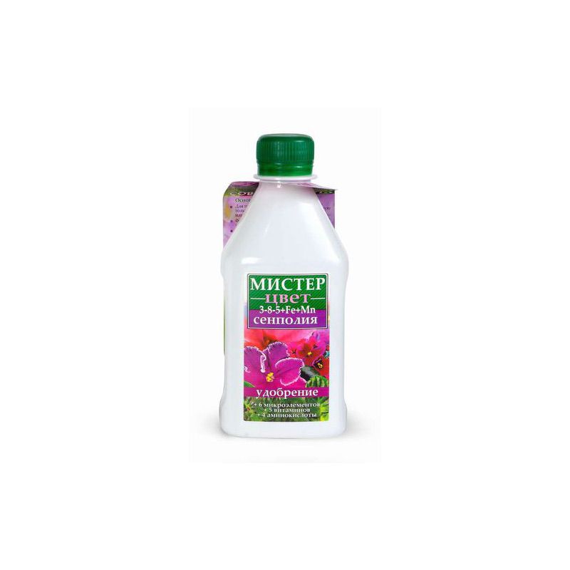 Містер Колір сенполія - це мінеральне добриво розширеного спектра дії для фіалок (сенполій) та інших видів геснерієвих.
